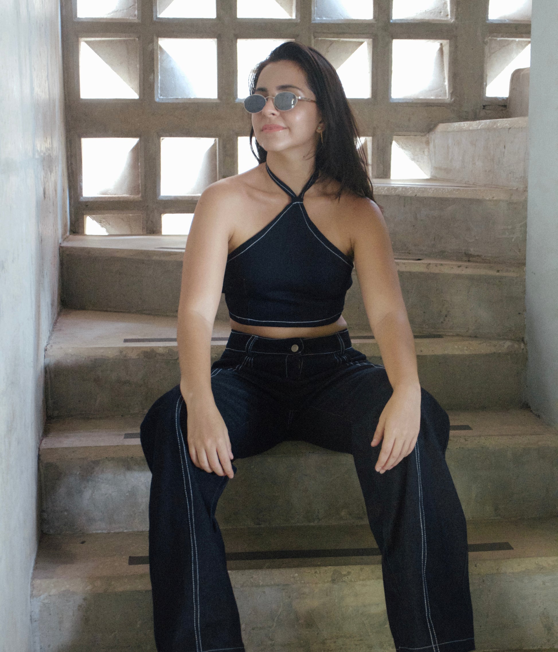 Confeccionado en denim índigo stretch de alta calidad, el Top Esencial es esa prenda versátil que trasciende lo básico. Sus pespuntes blancos contrastantes resaltan su silueta minimalista, mientras que su ajuste cómodo lo convierte en un infaltable para combinar con pantalones, faldas o capas ligeras.